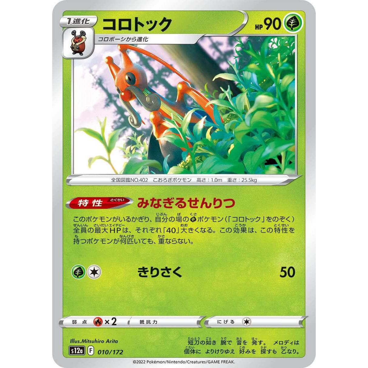 このポケモンがいるかぎり、自分の場のポケモン(「コロトック」をのぞく)全員の最大HPは、それぞれ「40」大きくなる。この効果は、この特性を持つポケモンが何匹いても、重ならない。